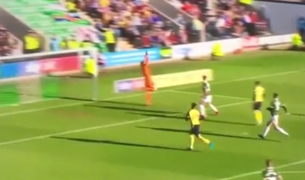 The Plymouth goalkeeper, Matt Massey, wanted to take the ball to a side goal because he wanted the medical staff to help him get injured. Opponent ran and before the ball came out he stopped and made a lobby, so he scored!