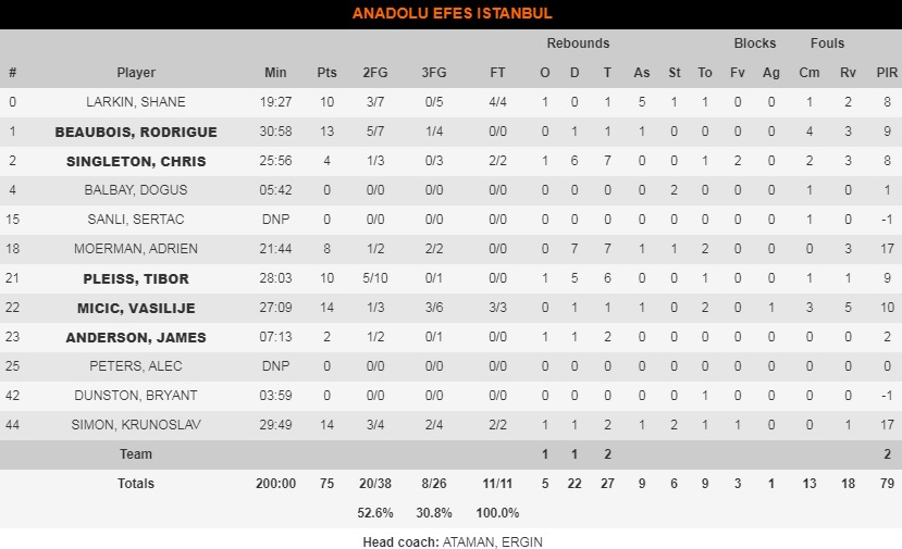 Fantastic first quarter by Yiannis Spheropoulos, having Hunter and Wilbekin and Zusman in excellent condition. At the same time, Maccabi had ... drowned and limited her Efes trumps with her defense, holding her to just eleven points in the first quarter (21-11). However, in the second period things turned around and Ataman's team got on foot in the .. gas! With aggressive pluralism and imposing its frantic pace, Efes not only turned the score but went into the half with a six-point lead (36-42).