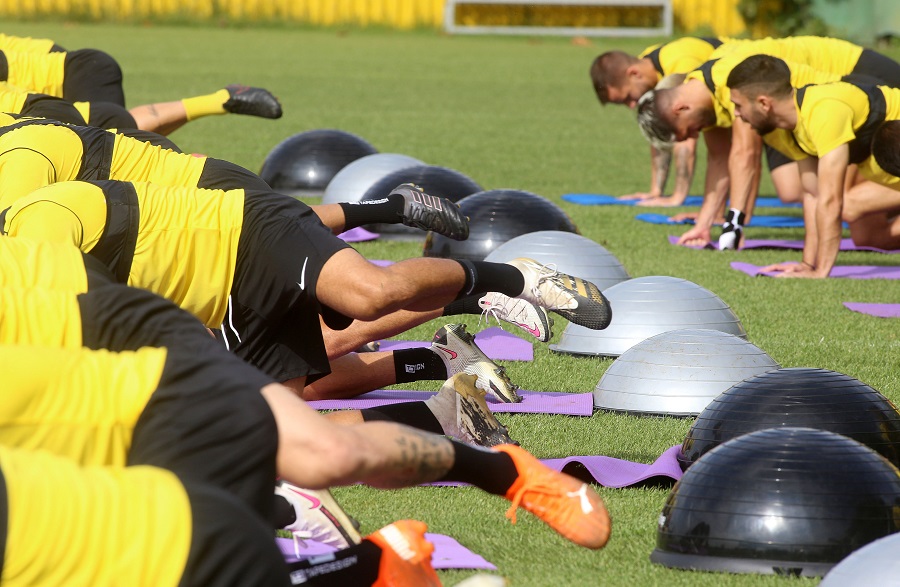 The είχε menu had strengthening exercises and aerobic ball games, while on Thursday, the footballers of Akis Mantzios will train morning and afternoon at the facilities of "Dasygeneio".