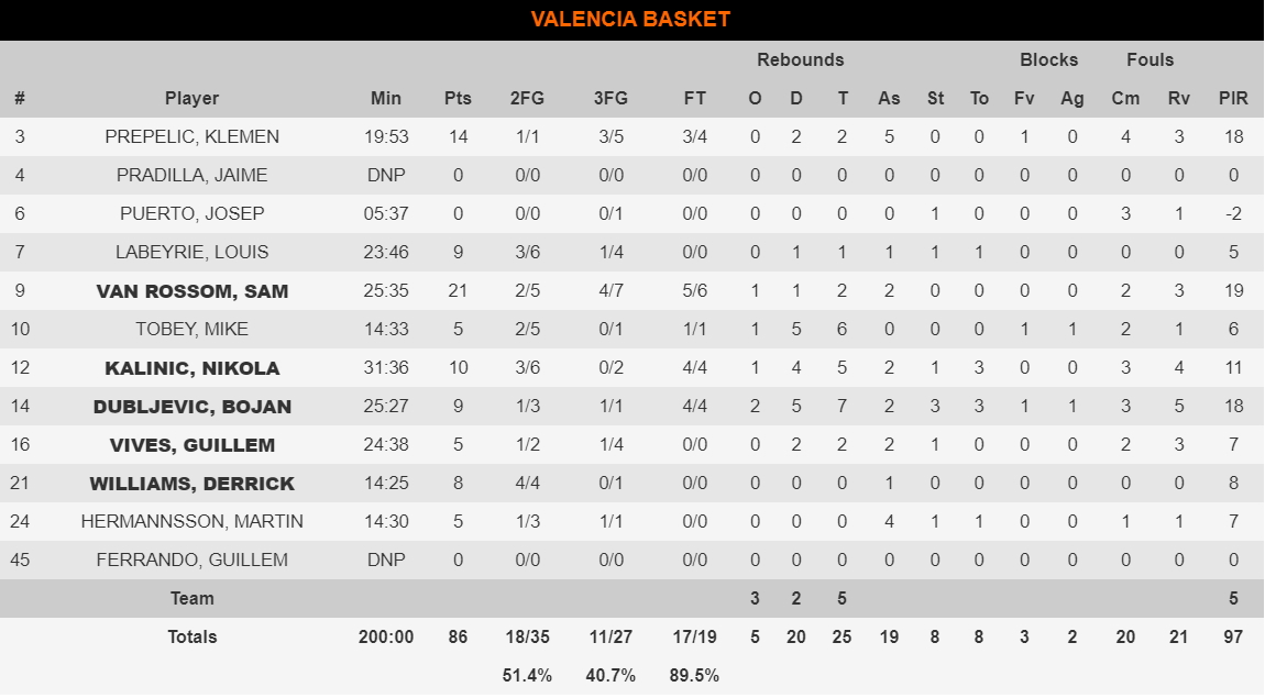 In a match with a shocking development, Valencia had the details with it and prevailed 86-81 over Armani Milano.