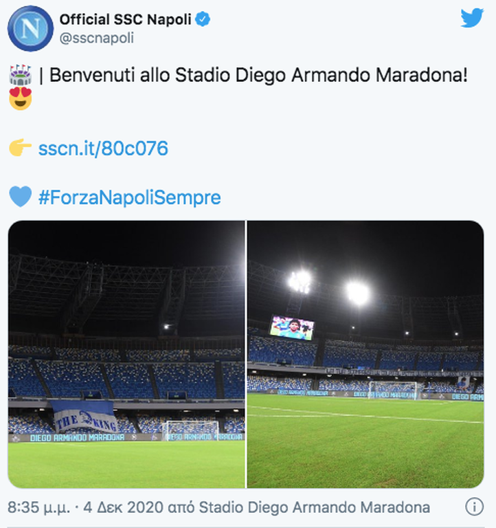 Την πρώτη ανάρτηση με αναφορά στο γήπεδό της με το νέου του όνομα έκανε η Νάπολι