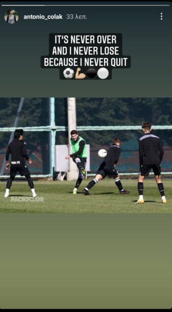 Ο επιθετικός του ΠΑΟΚ, Αντόνιο Τσόλακ με μήνυμά του μέσα από τα social media ανέφερε πως «δεν τα παρατάει ποτέ».