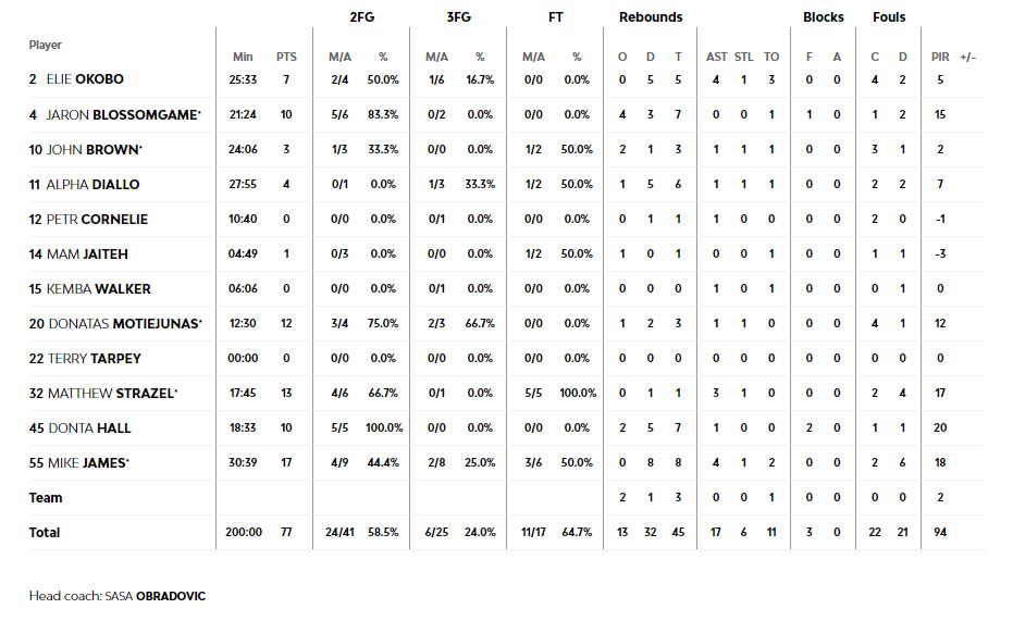 Ο ΚΑΛΥΤΕΡΟΣ ΟΛΩΝ: Γεμάτο ματς από τον Μάικ Τζέιμς, ο οποίος είχε 17 πόντους, 8 ριμπάουντ, 4 ασίστ, 1 κλέψιμο και 2 λάθη σε 30:39'.