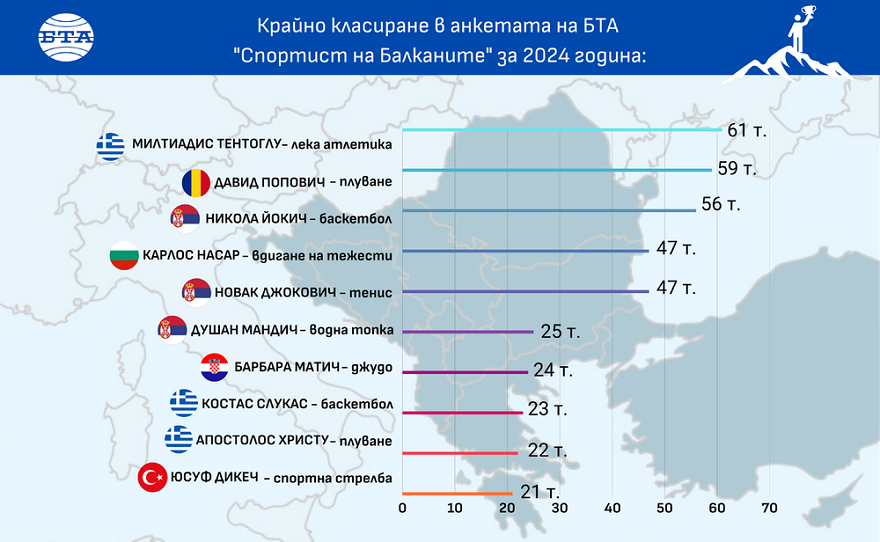 As announced by the Bulgarian news agency BTA, the Greek long distance Olympic champion won the 51st BTA "Sportsman of the Balkans" vote for 2024.