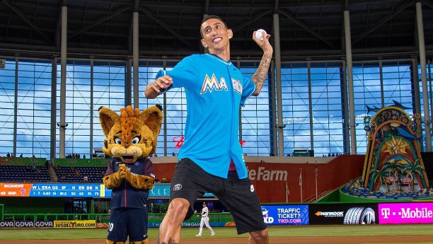 Ο Ανχελ Ντι Μαρία πήγε σε γήπεδο μπέιζμπολ και αφού έριξε την πρώτη βολή, τους έκανε πλάκα με γκελάκια με τη μικρή μπάλα του αθλήματος.