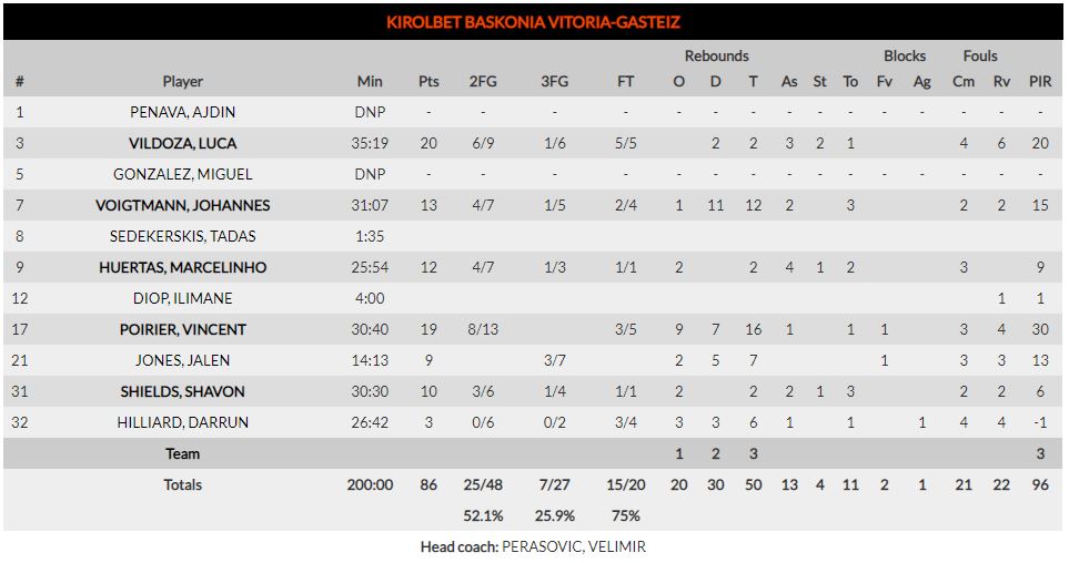 Aylon scored for 69-62, with Reall not stopping and pushing for overturning. Another three-pointer from the genre, Jay Si Carol, brought the 72-68 with 5 minutes to finish. Again, through Poiroi, Baskonia scored and the match with 2 minutes later reached 79-72. Baskonia remained serious in her shot, won the victory and now has positive results with Efes and CSKA to throw Olympiacos on the canvas.