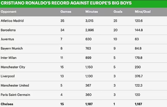 Ο Κριστιάνο Ρονάλντο μπορεί πολύ εύκολα να ισχυριστεί πως η Τσέλσι είναι η χειρότερη αντίπαλος που έχει αντιμετωπίσει σε όλα τα χρόνια της καριέρας του.