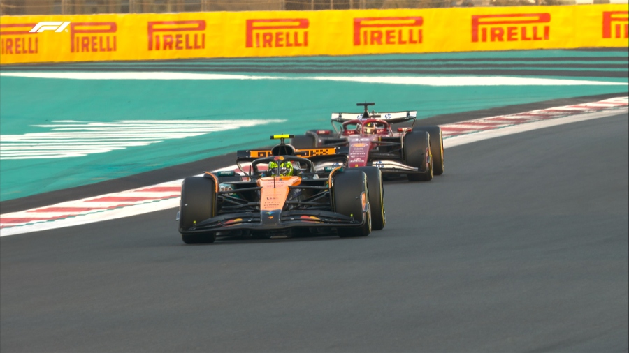 Και φτάνουμε στον 17ο γύρο, όπου οι Νόρις και Λεκλέρ μπήκαν μαζί για πιτ στοπς, βάζοντας την σκληρή γόμα. Ο πρώτος βγήκε στην πίστα στην 9η θέση και ο δεύτερος στη 10η, έχοντας αμφότεροι εξαιρετικό ρυθμό, προσπερνώντας με άνεση τα προπορευόμενα μονοθέσια. Έξι γύρους αργότερα, ο πιλότος της McLaren ανέβηκε στην 4η θέση έχοντας μπροστά του τη δεύτερη Red Bull, εκείνη του Τσουνόντα. Παρά τις προσπάθειες του Ιάπωνα να «φρενάρει» τον Νόρις δίνοντας χρόνο στον Φερστάπεν να «χτίσει» διαφορά, ο Νόρις πέρασε σε ένα απίθανο προσπέρασμα σχεδόν εκτός πίστας (!), ανεβαίνοντας στην 3η θέση. Λίγο αργότερα, τον ακολούθησε και ο Λεκλέρ, με τον Τσουνόντα να τιμωρείται με ποινή 5 δευτερολέπτων για επικίνδυνη οδήγηση στην μάχη με τον Νόρις.