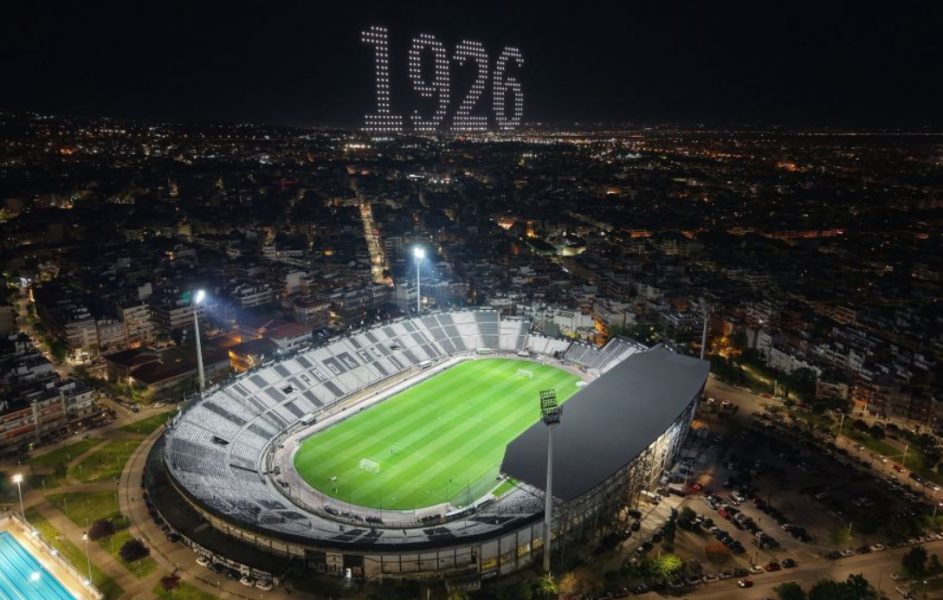Εντυπωσιακό αν μη τι άλλο ήταν το drone show που πραγματοποιήθηκε στον ουρανό του γηπέδου της Τούμπας για τα 100 χρόνια από την ίδρυση του ΠΑΟΚ.